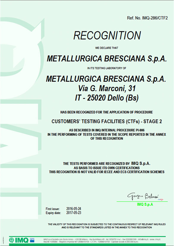 effettua un constante controllo del processo produttivo a garanzia dell’elevato livello qualitativo del prodotto. E’ dotata di un laboratorio nel quale operano 8 tecnici, attrezzato con strumentazione all’avanguardia che consente di internalizzare al 100% le prove di caratterizzazione sulle materie prime dei fornitori e i test normativi sul prodotto finito, ottenendo la certificazione CTFs (Customers' Testing Facilities) da parte di IMQ.